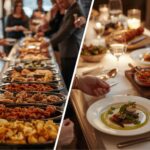Buffet and plated catering mainly differ in how food is served, how formal the event feels, and how costs and logistics work. Buffets are self serve and flexible, while plated meals are served at the table and feel more formal.